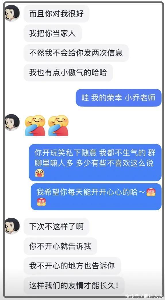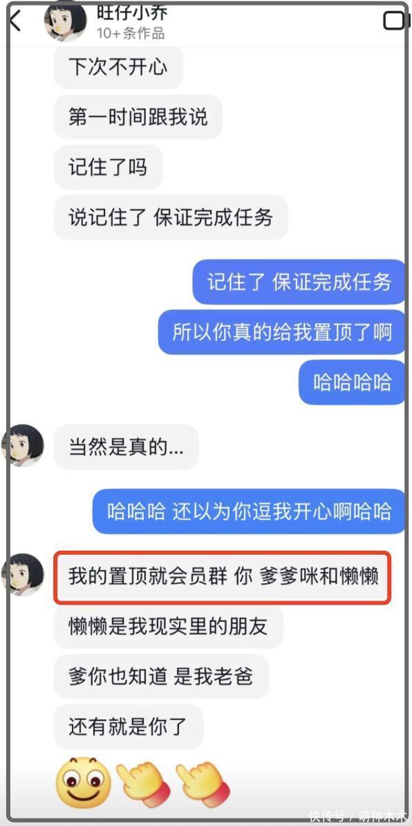 大哥在陆续充值后,也如愿以偿成为了旺仔小乔的置顶会员群。旺仔小乔还给大哥来了波糖衣炮弹,说自己的置顶会员群就三个,一个是自己的亲爹,一个是自己现实中的朋友,还有一个就是这位榜一大哥,三言两语就给大哥哄得相当开心。