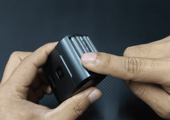 如果仅仅是五层刀网还不足以封神,这款未野往复式迷你剃须刀直接做到了不仅每个刀头不仅能独立上下浮动,整组刀头还能协同摆动,像“磁流体般吸附在面部轮廓上”,再加上刀网0.5毫米沉浮无死角贴合科技,以及0.041mm微米级超薄网膜,实测中,即使在凹凸不平的下巴、喉结和下颌线部位,刀网也能保持紧密贴合,大大减少了反复刮剃的需要。