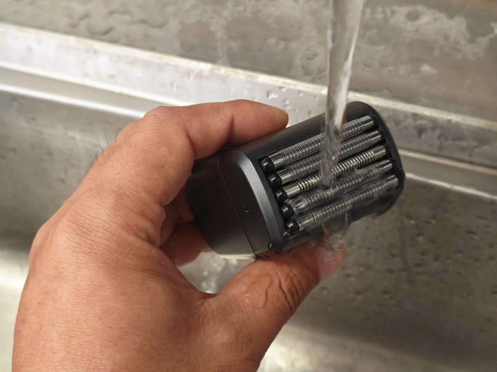 另外,作为剃须刀产品,清洁也是一方面,它直接可以做到全身水洗,因为它支持IPX7级全身防水,在剃须后可直接在水龙头下冲洗刀头,清洁毫无压力。
